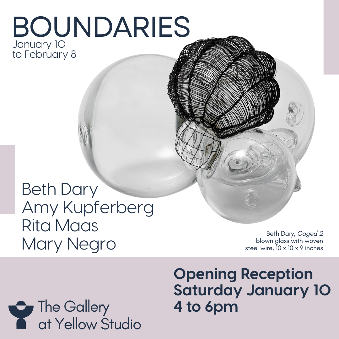 The Gallery at Yellow Studio presents Boundaries, a group exhibition bringing together four women artists whose conceptually driven practices explore the spaces where systems break down, blur, or transform. Through photography, drawing, printmaking, and mixed media, Beth Dary, Amy Kupferberg, Rita Maas, and Mary Negro each use abstraction as a tool to process complexity, whether examining information systems, environmental change, material transformation, or the uncertainties of contemporary life. The exhibition runs from January 10 through February 8, 2026.